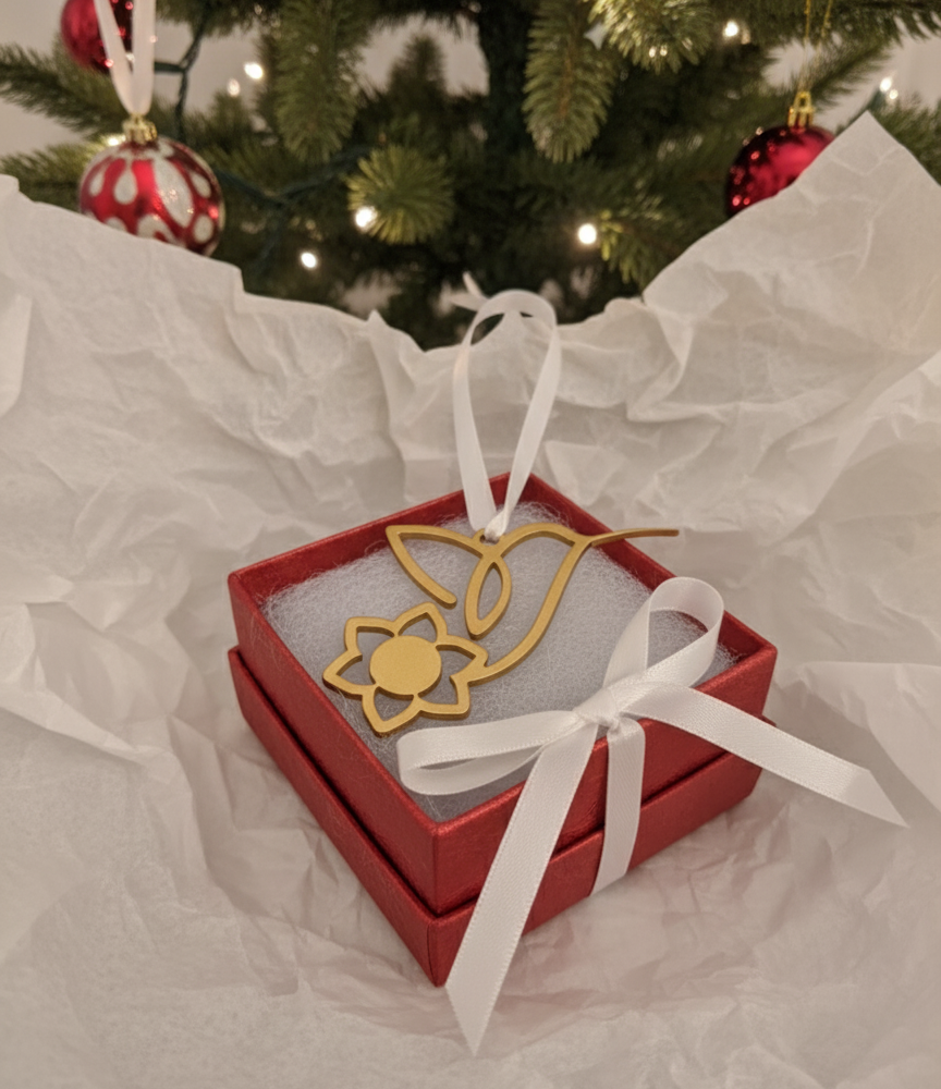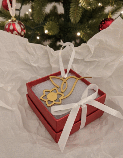 This year’s ornament features a stunning laser-cut hummingbird, delicately painted in shimmering gold — a symbol of hope, strength, and resilience. 🌿