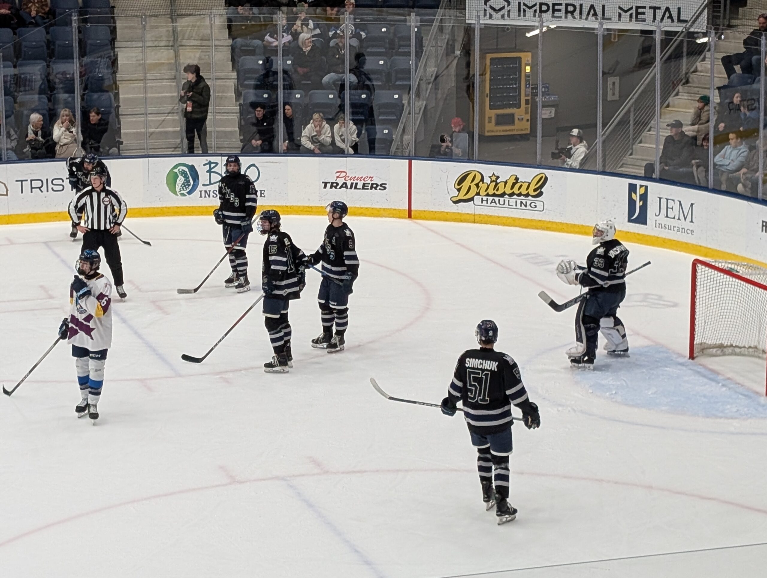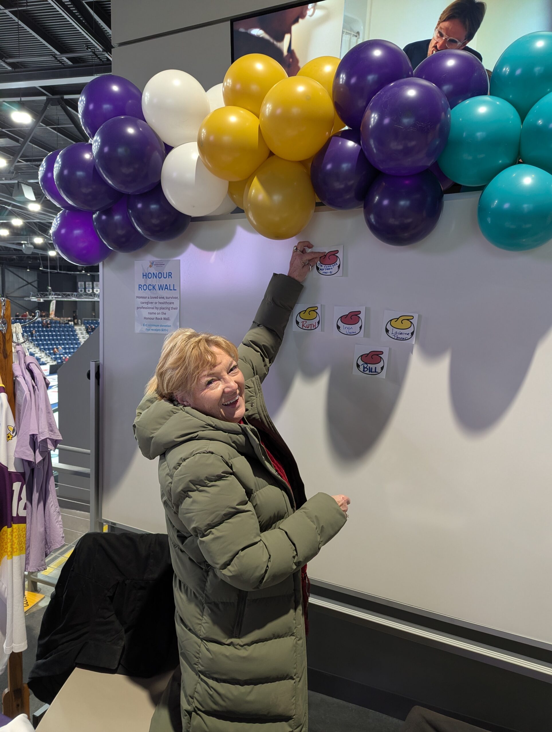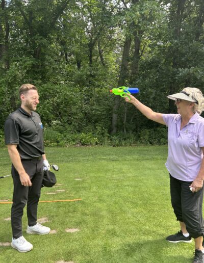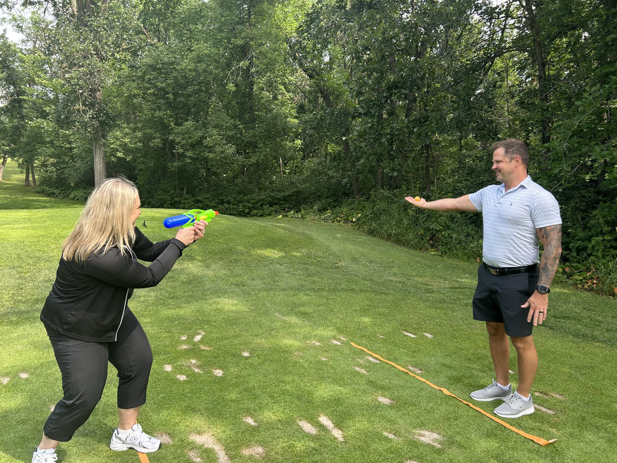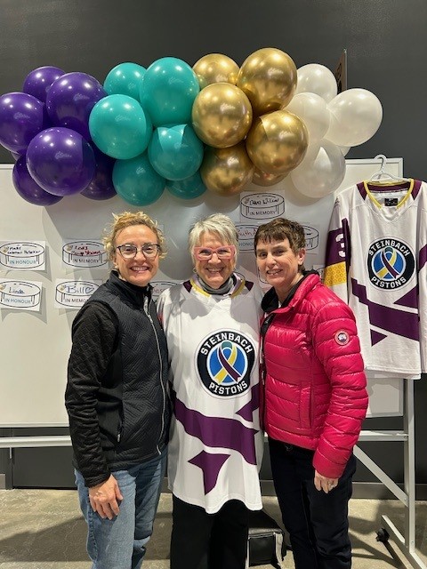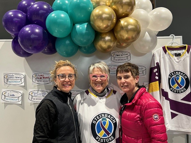 Kim Friesen of Friesen Drillers presents a 25,000 donation to Cindi (ED) and Heather (Board Chair).