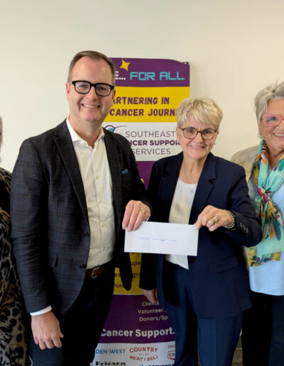 Heather Jowett (Board Chair) and Cindi Rempel Patrick (Exec. Director) receive a $25,000 donation presented by Foundation chair, Chris Goertzen and executive director, Linda Peters on behalf of the Bethesda Foundation!